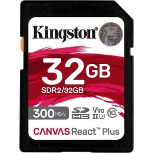 Kingston Canvas React Plus SDR2 32 GB Class 10/UHS-II (U3) V90 SDHC - 300 MB/s Read - 260 MB/s Write