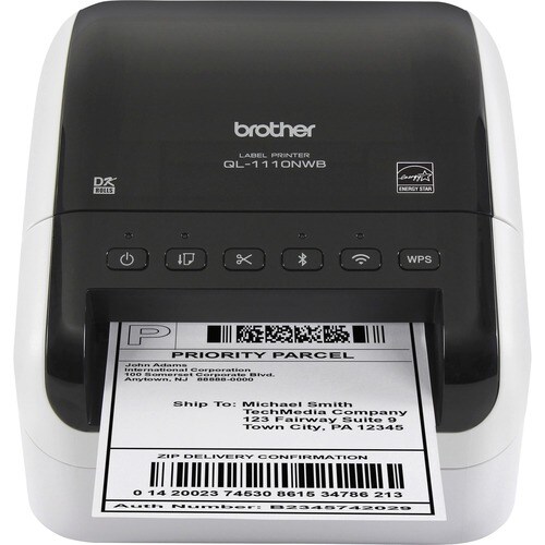 Brother QL-1110NWB Desktop Direct Thermal Printer - Monochrome - Label Print - USB - Bluetooth - Wireless LAN - 3 m Print Length x 101.60 mm (4") Print Width - 110 mm/s Mono - 300 x 300 dpi - 103.60 mm Label Width - For PC, iOS, Mac